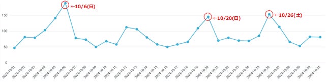 10月1日から31日までの日別購入者数を調べてみました。日別推移をみると、発売後6日目で10月最初の日曜日にあたる6(日)が最多人数であることが分かります。次いで26(土)、20(日)の順で購入者数が多いため、土日に買ってその日の夕食に、もしくは平日の夕食のために買い置きした人が多かったのかもしれません。