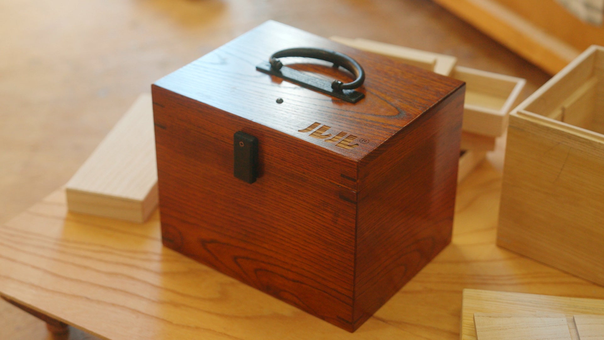 岩手県を代表する伝統工芸「岩谷堂箪笥」の技術が詰まったくすり箱。外側にはケヤキ、内側には桐の木材が使用されており、取っ手には南部鉄器が使用されています。表面には漆が施されており、まさに匠の技が集約された逸品です。