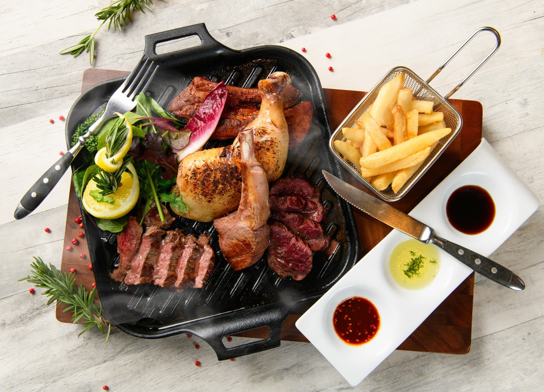 手軽なメニューから高級食材を使用した本格料理まで楽しめるレストラン。15種類の500円で楽しめる「ワンコイン前菜」の他、ハンバーグとフォアグラのソテーやパスタ、プランチャー料理(鉄板焼き)もお気軽にお召し上がりいただけます。
