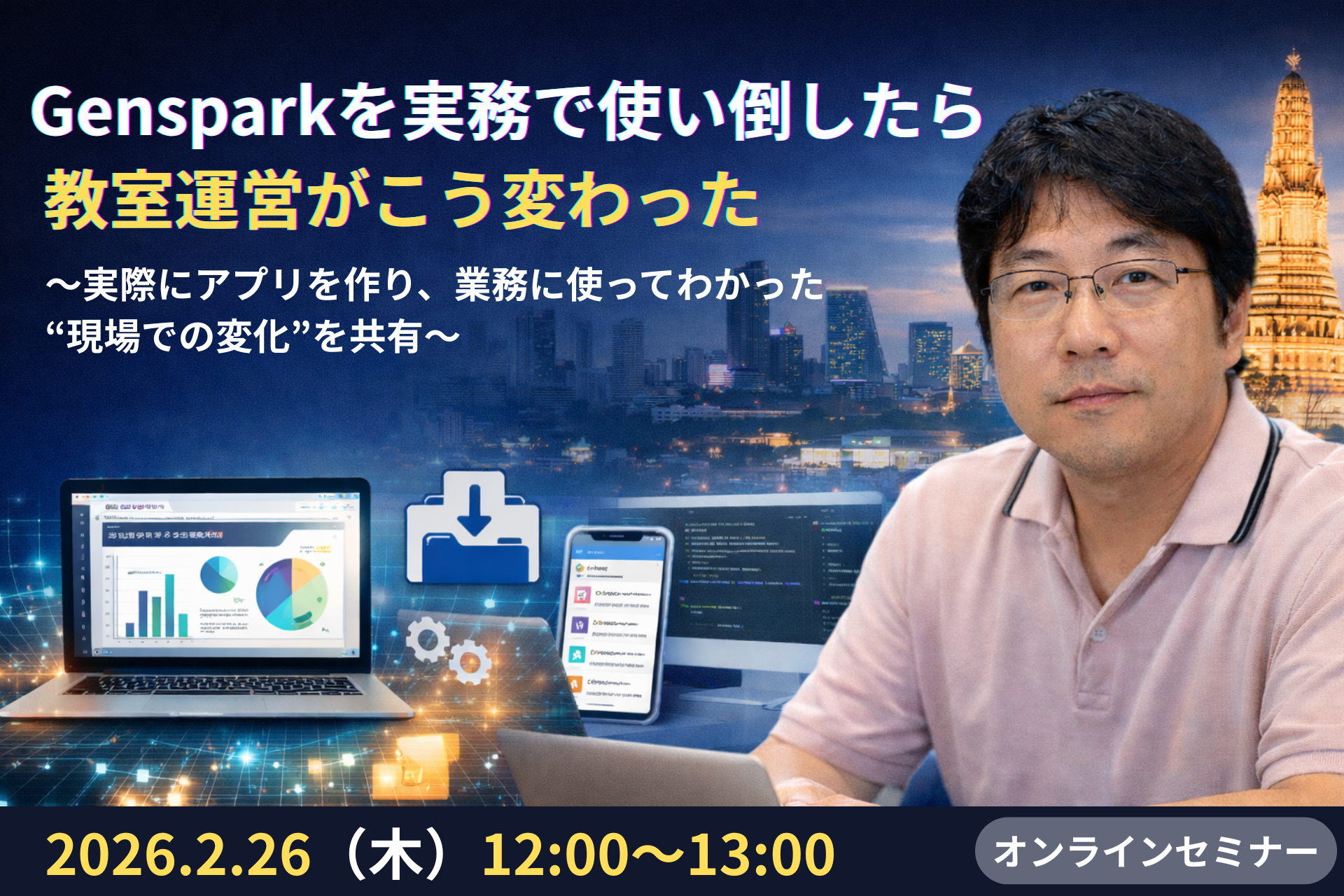 10代向けデジタル人材育成サービス『TechHigher』を運営する株式会社エクシード(本社:東京都渋谷区、代表取締役:澤部愛子)は、ライセンス提携校であるタイ・バンコクの「AI&プログラミングのKOBEYA」(代表:鈴木政路)を講師にお迎えし、「”Gensparkを使い始めて教室運営がこう変わりました”〜ChatGPTやGeminiに代わる選択肢〜」を、2月26日(木)12:00〜13:00(60分)にオンライン開催することをお知らせします。
