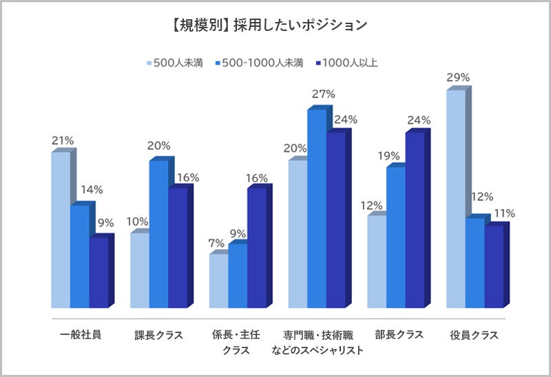 さらに、多くの企業が経験者採用において、役員クラス・部長クラス・スペシャリストといったハイクラス・ミドルクラスの人材を求めています。