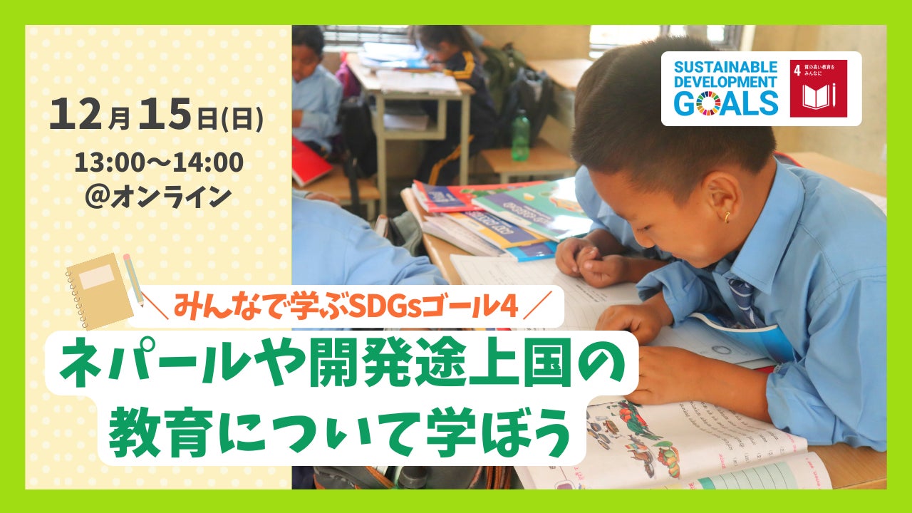 大人も子どももSDGs!12月15日、オンラインイベント「みんなで学ぶSDGsゴール4~ネパールや開発途上国の教育について学ぼう~」開催