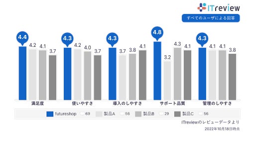 国内最大級 IT製品/ SaaSのレビューサイト「ITreview」で、「ITreviewカテゴリーレポート『ECサイト構築部門』(2022 Fall)」において、「ECサイト構築分野」にてユーザー評価の高いことを示す「LEADER」を3年連続で受賞しました。