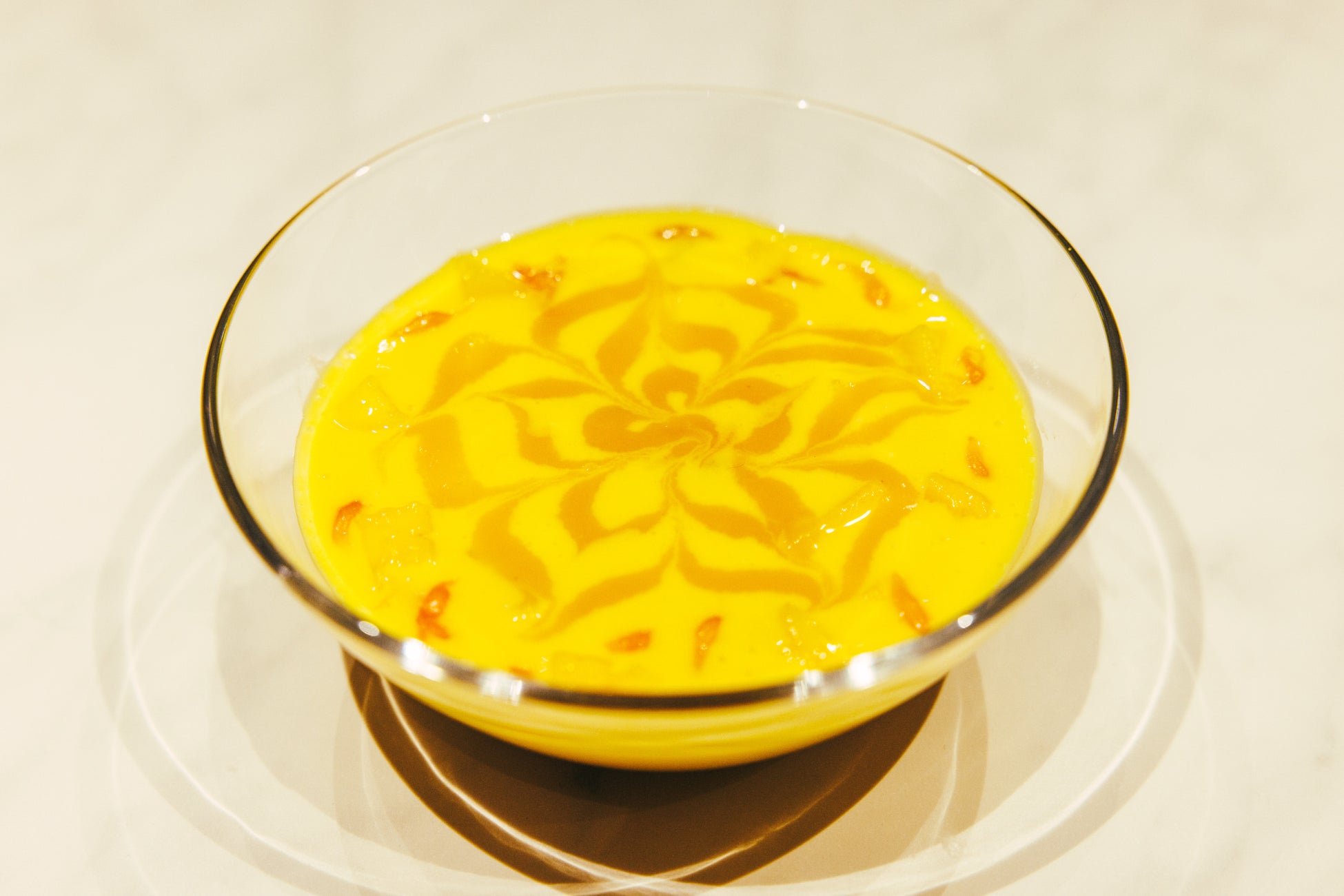 ジューシーなフレッシュマンゴーのとろける濃厚な甘みとピンクグレープフルーツの爽やかな酸みと苦みを調和させたCINA特製のデザートです。