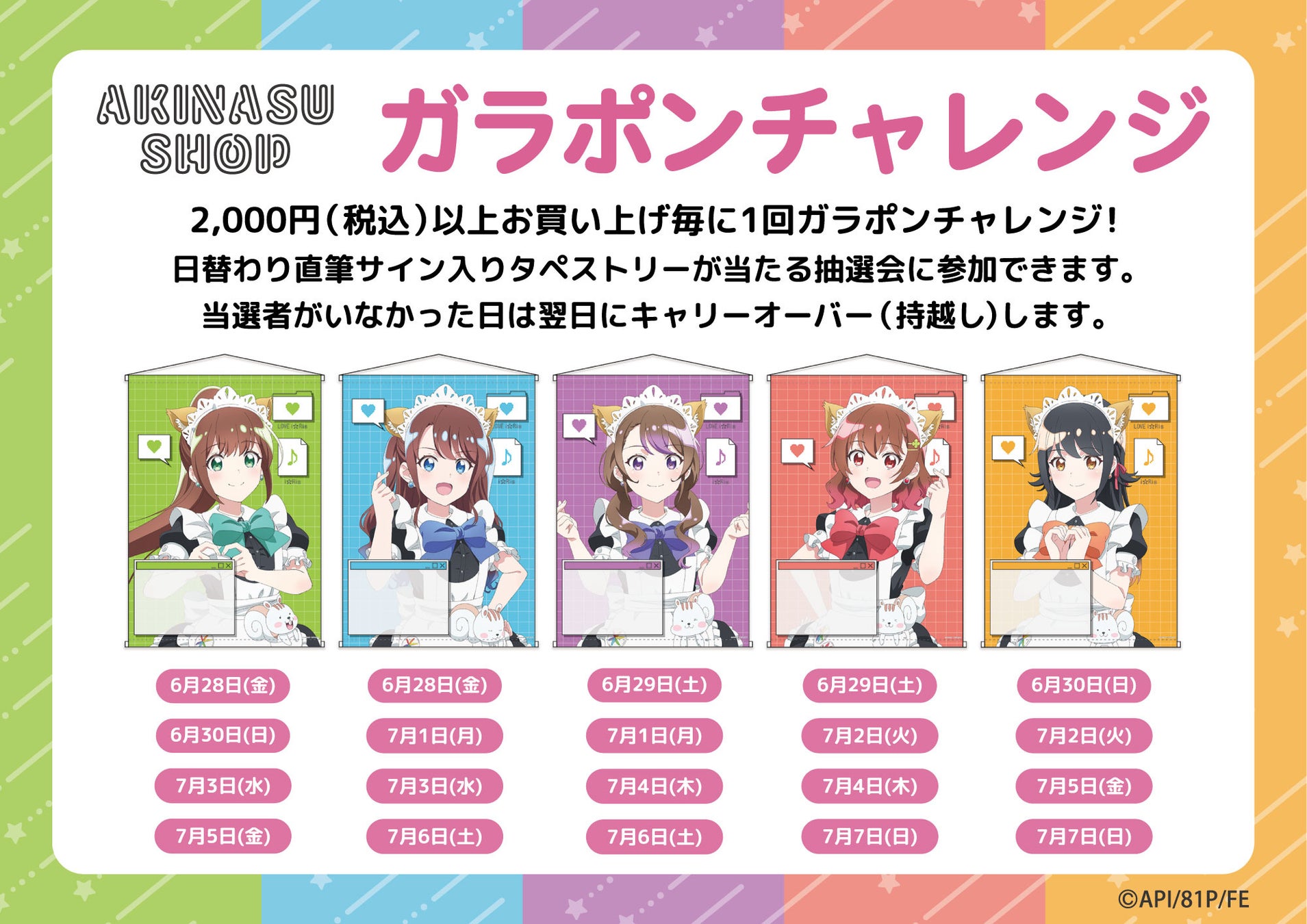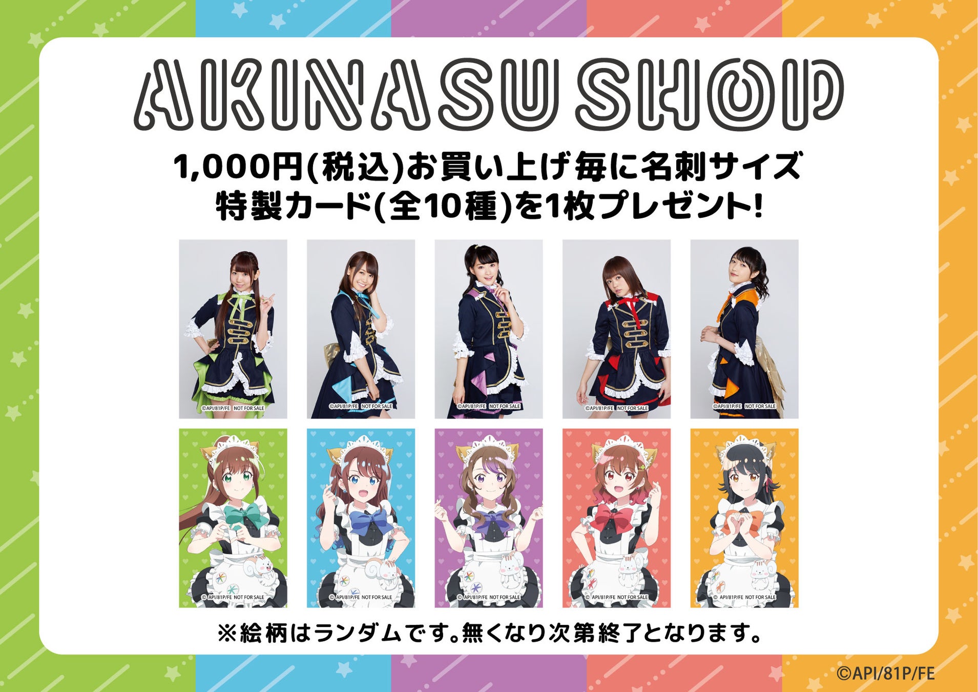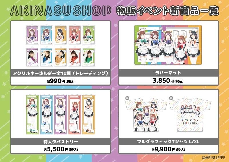 「AKINASU SHOP」で描きおろしメイド服イラスト使用グッズ販売抽選でキャスト直筆サイン入りグッズ、トークショー参加チケットが当たる!