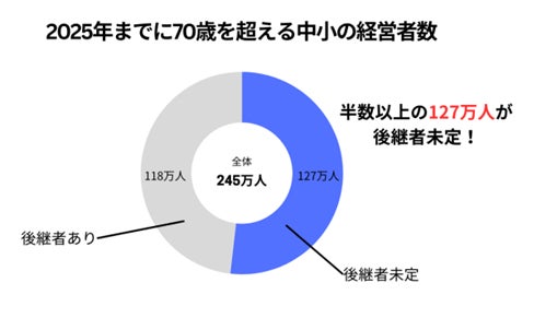 また、中小企業庁によると、2025年までに70歳を超える中小の経営トップが245万人となり、うち127万人が後継者未定となっており、今後も事業承継問題解決のためのM&A活用は拡大することが見込まれます。