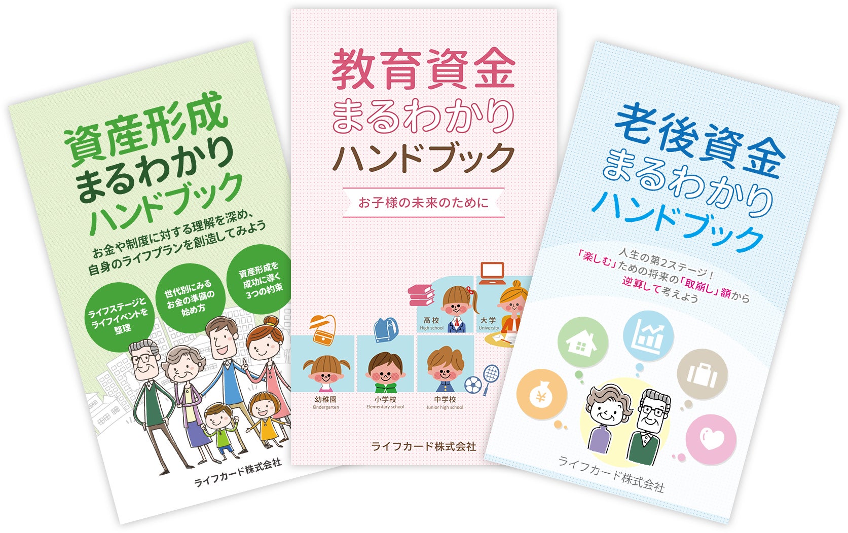 先着400名さまに、「資産形成」「教育資金」「老後資金」をわかりやすく解説した3種類のハンドブックのうち、今なら無料で1冊プレゼント!ぜひ、この機会にお問合せください!