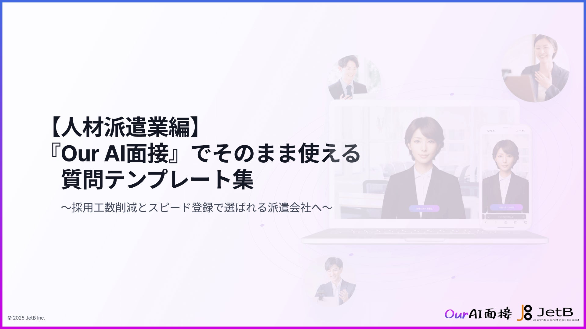 【Our AI面接】派遣登録の「他社流出」と「機会損失」を防ぐ。AI面接ですぐ使える「質問テンプレート集(人材派遣業編)」を無料公開【JetB株式会社】