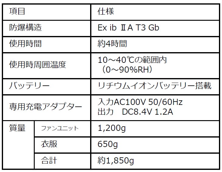 「クールファンEP」は、公益社団法人産業安全技術協会の検定審査に合格(防爆検定取得済み 防爆構造:Ex ib ⅡA T3 Gb)、2024年4月に発売予定です。