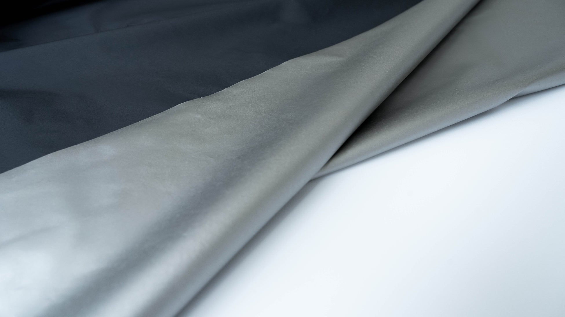 「Higassan™」には小松マテーレの独自技術を用いた薄膜遮熱コーティング素材を使用しています。生地に厚み約0.03mmの特殊な極薄シルバーコーティングを施しており、このコーティング層が太陽からの熱を遮ります。代表的な生地サンプルを用いた遮熱性試験(JIS L1951)での遮熱率は50%という試験データを確認しています※1。これは一般的に遮熱性の基準※2 とされる35%を大きく上回る数値になります。