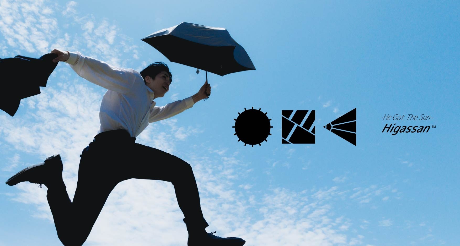 「Higassan™」には今まで日傘を使っていなかった男性に手軽に使っていただき、夏場の厳しい太陽に打ち勝ってほしいというメッセージをこめています。もちろん雨傘としての使用も可能です。軽量でコンパクトなため、当然女性にもおすすめです。
