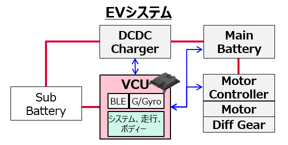 当社は、かねてより取り扱っていた小型モビリティ向け動力ユニットや、車両制御用の電子コントローラー機能を内蔵したモーターインバーターであるNEOSコントローラー(株式会社豊田自動織機製)に加えてVCUを取り扱うことで、システム全体を統合したトータルソリューションの提案が可能となりました。これにより、個別部品ごとの調整や開発負担を軽減し、システム全体の最適化・開発期間の短縮を実現します。