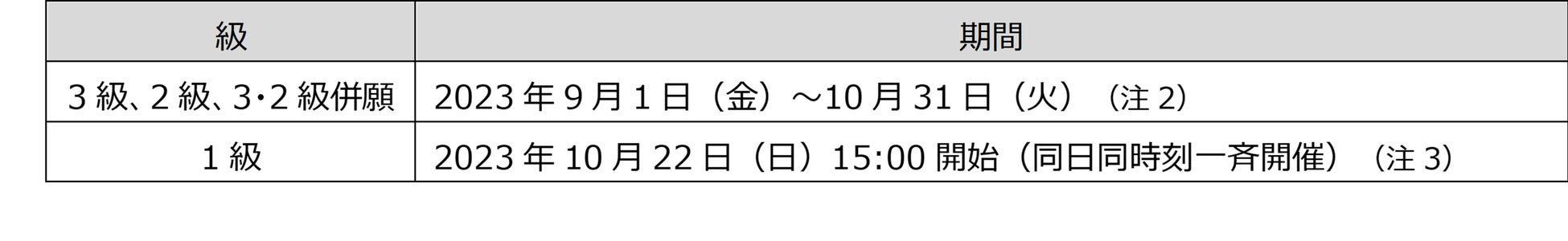 (注6):1級は2023年9月29日(金)までに2級に合格された方がお申込いただけます。