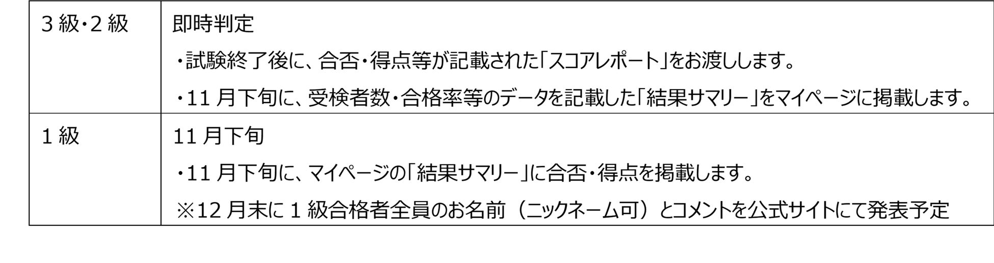 ・1級は“同日同時刻一斉開催“で、全受検者に同じ問題を出題します。問題及び解答は受検日翌日の10月23日(月)に、公式サイトの1級受検者専用ページで限定公開します。