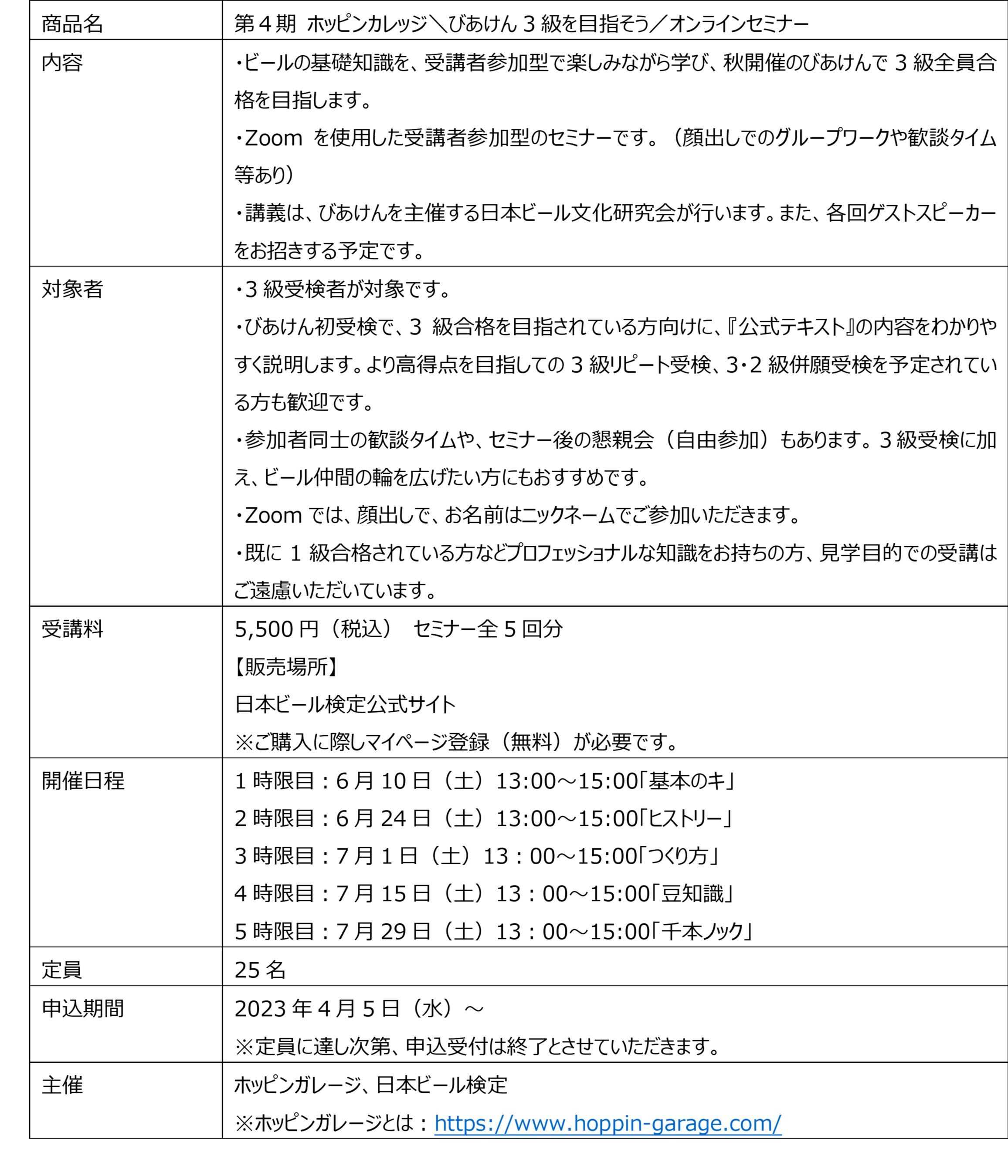 第4期 ホッピンカレッジ\びあけん3級を目指そう/オンラインセミナー