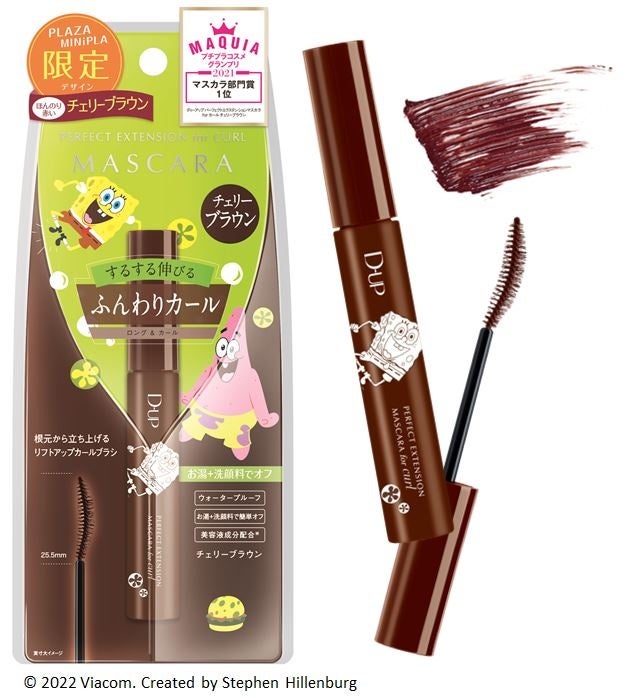 化粧品輸入製造の株式会社 ディー・アップ(本社:東京都港区 代表取締役:坂井 満)は、ベストコスメを多数受賞している『ディーアップ パーフェクトエクステンションマスカラ for カール チェリーブラウン』から、プラザスタイルがマスターライセンスを保有する世界中で人気のキャラクター『SpongeBob(スポンジ・ボブ)』をあしらったデザインボトルを、2022年3月11日(金)より全国のPLAZA・MINiPLAで限定発売いたします。