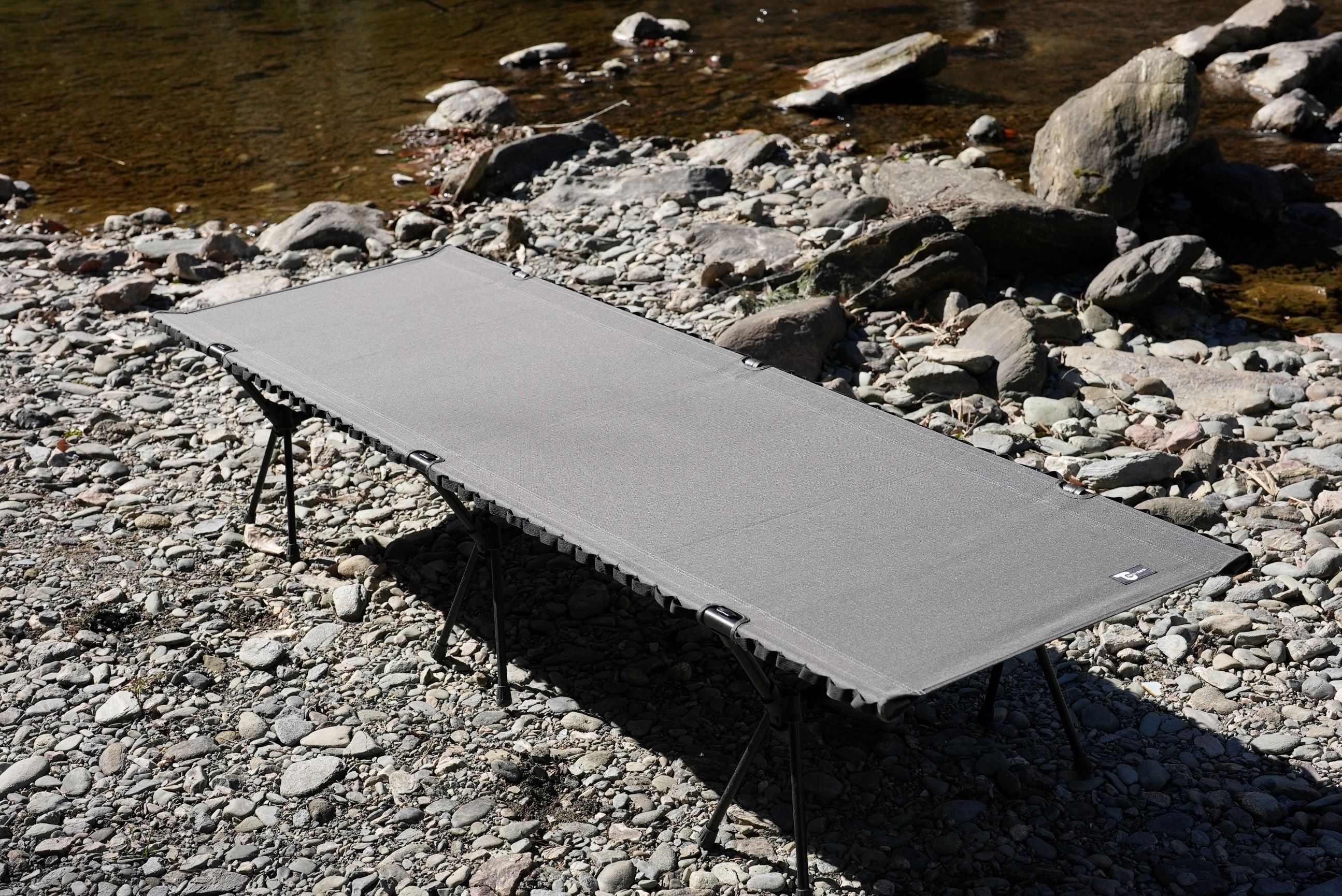 高さはハイとローに切り替えが可能で、様々なシーンに対応。何度も試作を重ね、生地の選定、生地圧、コット幅を調整し、寝心地の良い張り感を実現しました。就寝用のベッドとして、腰掛けるベンチとして、けが人の運搬など災害時の備えとしてもご活用いただけます。