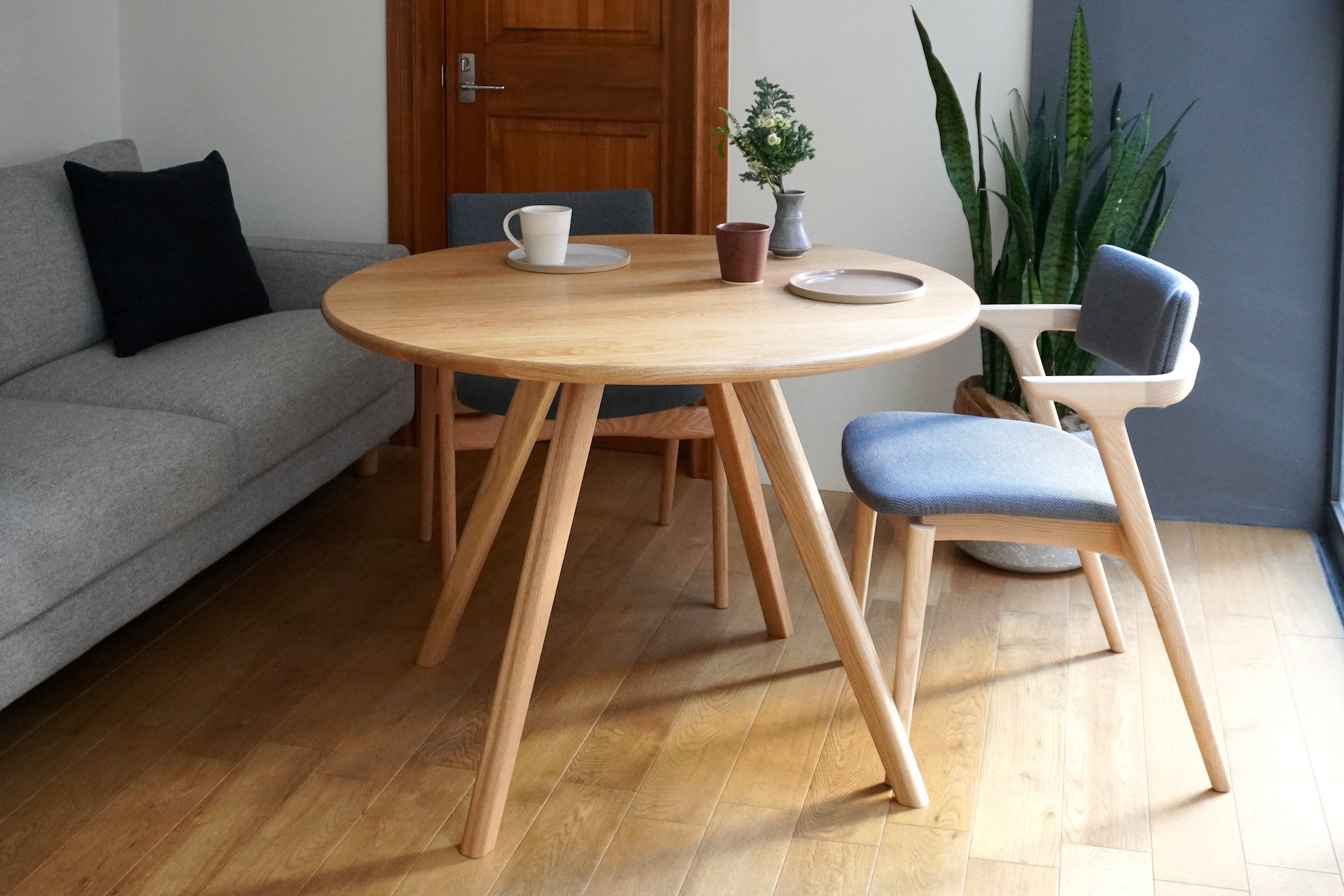 皆で中心に向かって食卓を囲むことができる丸テーブルですが、椅子を収めにくいことや動線計画が難しいことなどから、コンパクトな空間での使用は諦めることもしばしば。