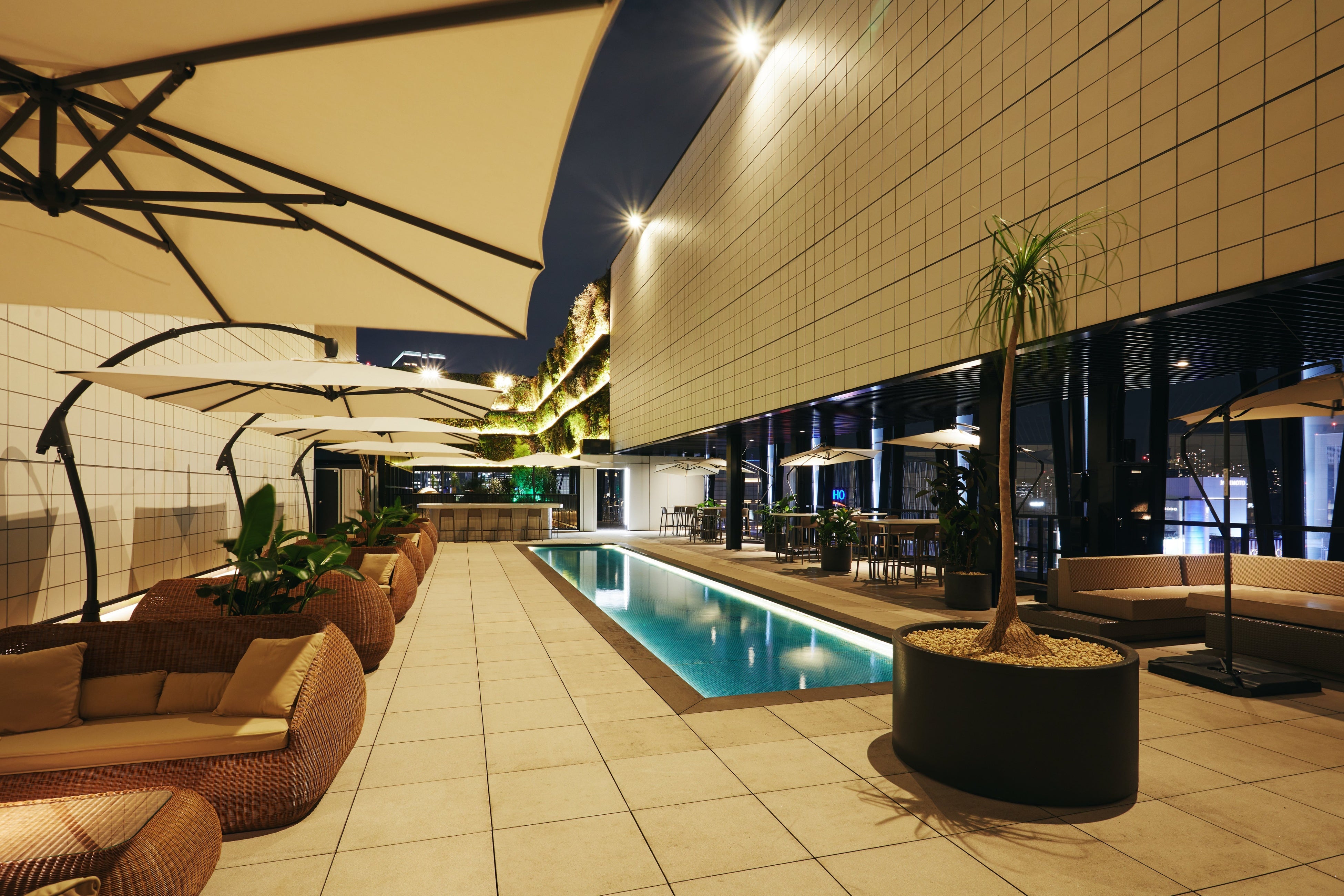また、全体の植栽は、「ひとの心に植物を植える」をスローガンに活動する、そら植物園株式会社のプラントハンター西畠 清順氏がプロデュースしました。それぞれのエリアに合わせながら、2エリアの差別化と、夜のシーンにも見合う植栽プランを実現しています。