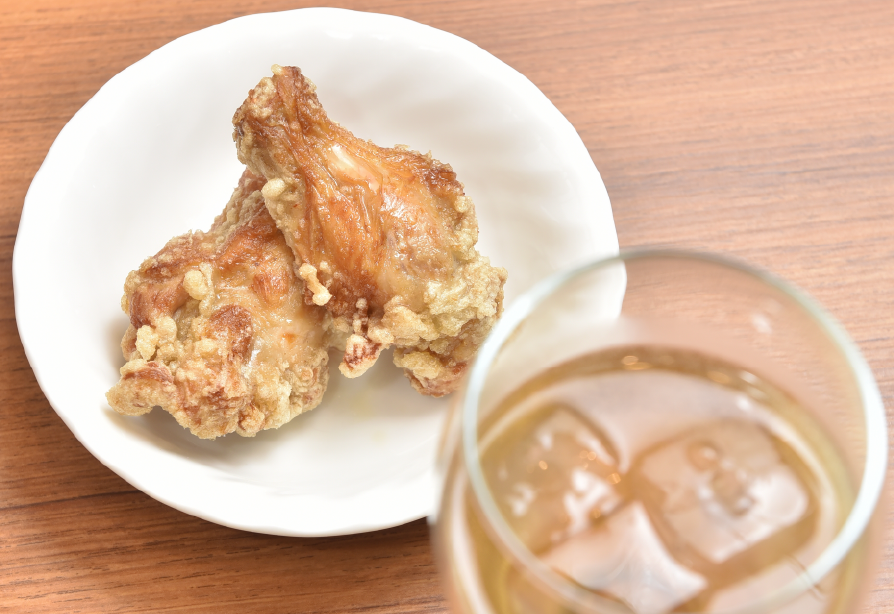 ・肥後赤鶏の手羽中唐揚げ(2本) 【30食限定/日】¥380(税込)熊本県産の肥後赤鶏を北極星の唐揚げに。