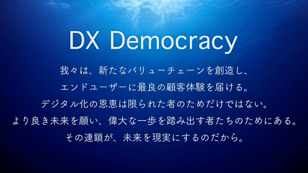 Speeeの目指すリアル産業のDXを表現したブランドステートメント。デジタル化による恩恵を受けづらい領域に対して価値提供を行い、エンドユーザーから事業者まで誰もがデジタル化の恩恵を受けられる、「DXの民主化」が実現された世の中を目指して策定いたしました。(参考:https://speee.jp/news/1841/)