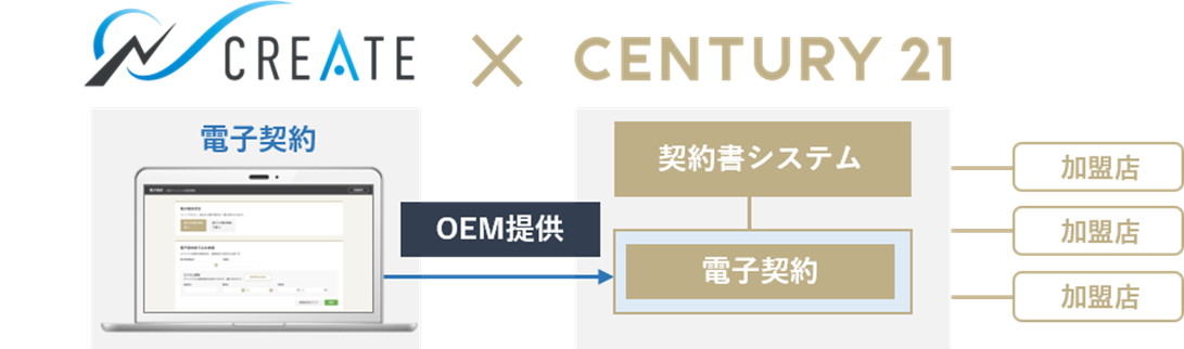 不動産テックを推進する日本情報クリエイト株式会社(本社:宮崎県都城市、代表取締役社長:米津 健一、以下「日本情報クリエイト」)は、株式会社センチュリー21・ジャパン(本社:東京都港区、代表取締役:園田 陽一、以下「センチュリー21・ジャパン」)に対して、自社で開発を手掛けるオンライン契約システム「電子契約システム」のOEM提供を開始します。