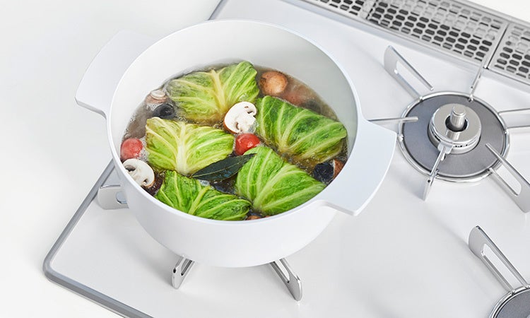 煮魚、里芋の煮物など、「煮込み時間」を設定するだけで火力を自動で調節。沸騰後の火力も自動調節し、ふきこぼれを防ぎます。