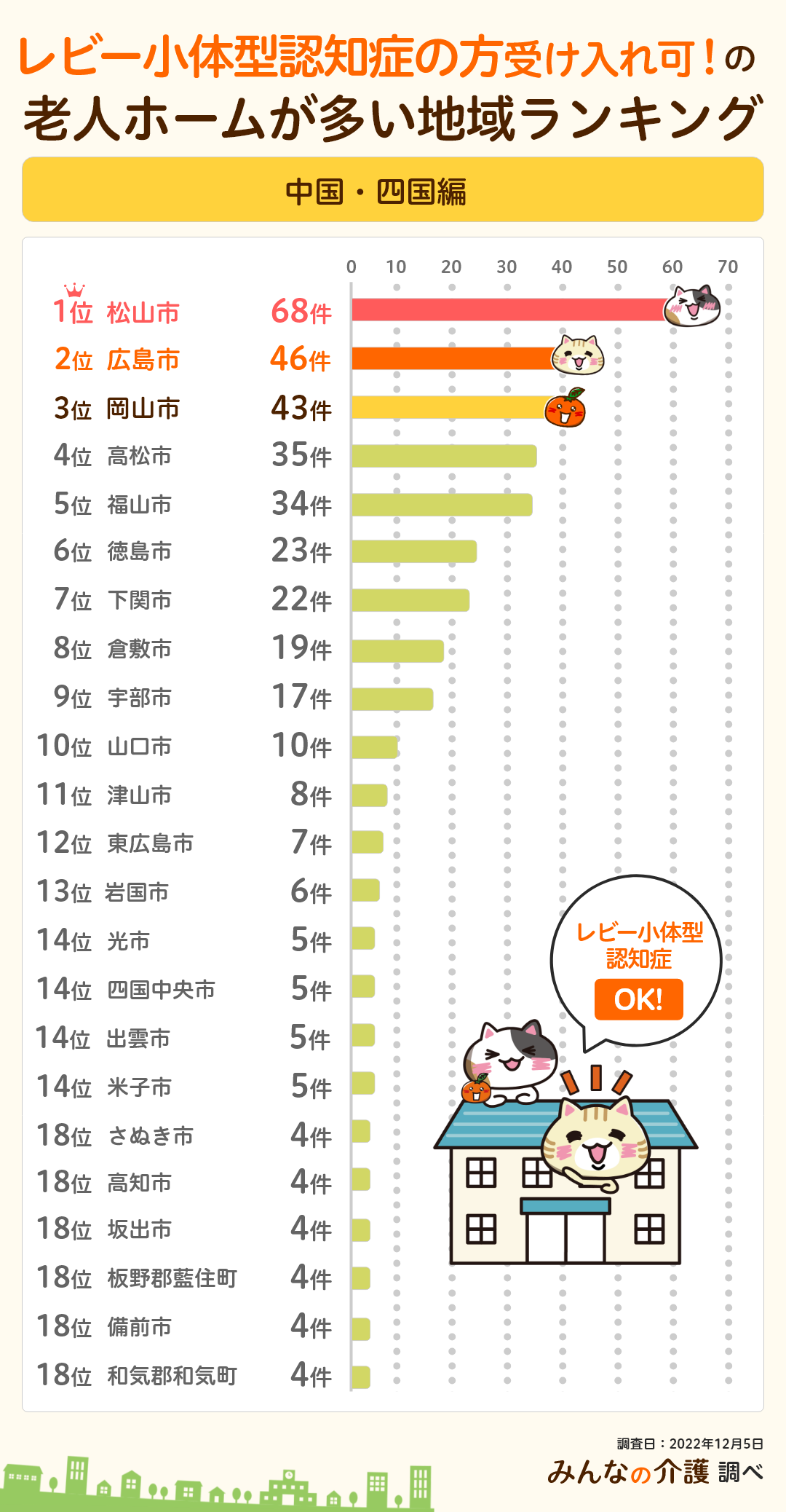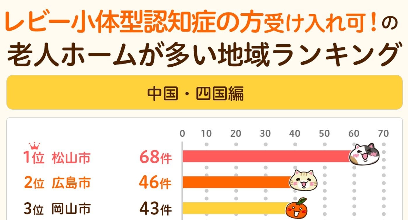 テキスト版「レビー小体型認知症の方を受け入れ可能な老人ホーム」な老人ホームが多い地域ランキング(中国・四国エリア)