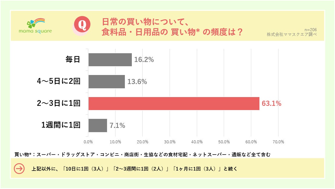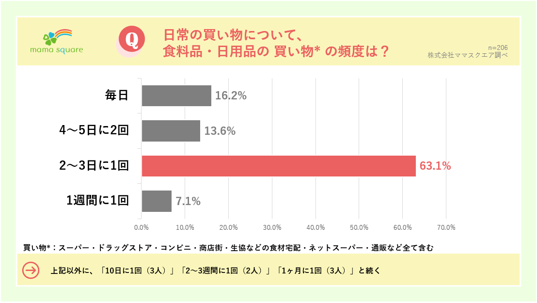 働くママによる日常の買い物頻度は2~3日に1回。2人に1人がネットスーパー・食材宅配サービス利用中!