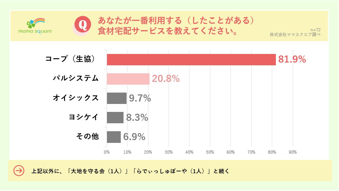 - 利用サービス1位:楽店西友(ネットスーパー)、コープ生協(食材宅配サービス)