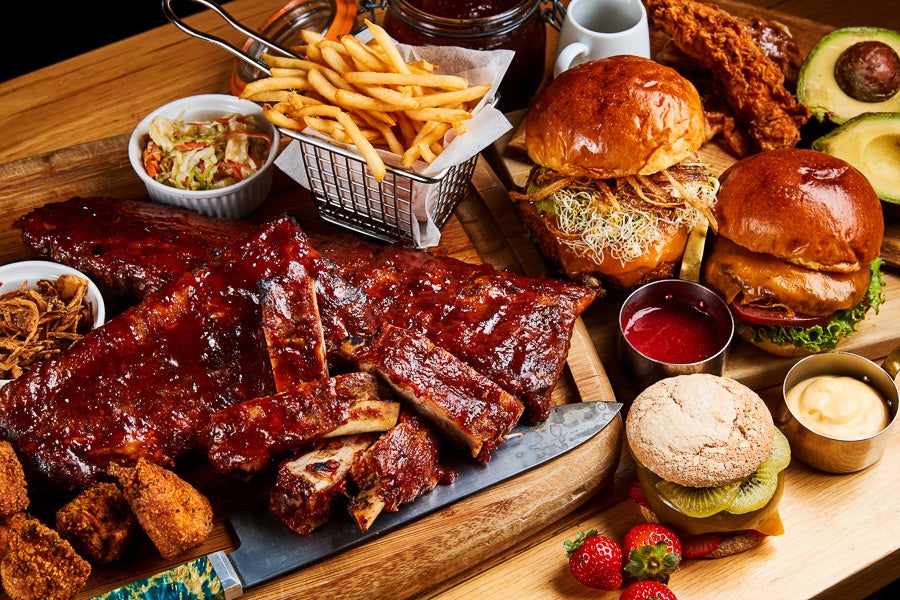 シェフ ニコがこの度「BeBu」のリオープニングに伴い、アメリカでの経験を活かし特別に開発したバーボンウイスキーをアクセントに使用したスパイシーな中にも甘みを感じるオリジナルBBQソースが魅力の「BBQポーク ベイビーバックリブ」をはじめ、香ばしくジューシーに焼き上げた100%ビーフパティにコクのあるレッドチェダーチーズをダブルでトッピングした「クラシックチーズバーガー」、病みつきになるケイジャンスパイスを纏わせた「骨なしケイジャンチキンウィング」、スペシャルグレービーソースに3種のチーズと特製のBBQプルドポークが絶妙な味わいの「ローディッドポテト」など、シェフのこだわりが感じられる料理が並びます。また、アメリカではポピュラーな、秘伝のスパイスをなじませてカリッと揚げたチキンに、クロワッサンのような味わいとワッフルのような食感が楽しい生地“クロッフル”を合わせメープルシロップをかけて楽しむ「チキン&クロッフル」など、オールデイブレックファストメニューも充実。デザートには、ニューヨークチーズケーキ、チョコレートブラウニーに加え、シェフのユニークなアイデアから生まれた「スイートバーガー」もフォトジェニックな注目のメニューです。