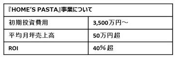 当社の出展ブースでは、『HOME’S PASTA』のコンセプトやFCモデルとしての特徴を紹介するとともに、これまでに出店してきた店舗の収益モデル、今後の出店戦略などについても詳細に説明いたします。