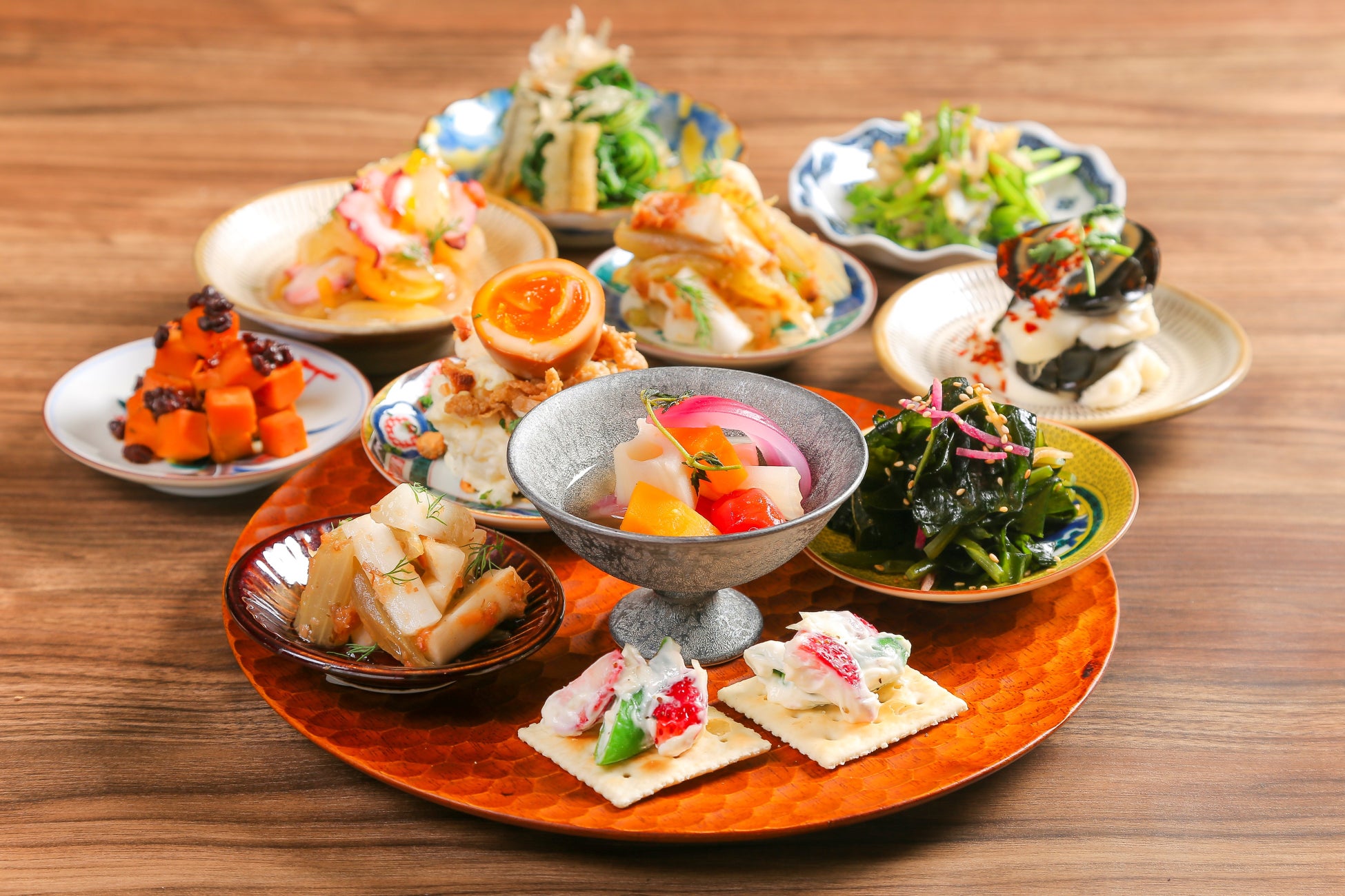 当日オススメの冷菜を少しずつ5種盛りにしました。ちょっとずつ色々食べてみたい方におすすめです。