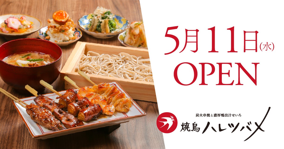「響」「鳥どり」など50業態100店舗以上の飲食店を展開する株式会社ダイナック(本社:東京都港区、代表取締役社長:秋山武史)は、串焼きと鶏料理を提供する「鳥どり」の全11店舗を、新たな居酒屋ブランドへ順次変更。2号店として炭火串焼と濃厚鴨出汁せいろ『焼鳥 ハレツバメ 丸の内センタービル店』を5月11日(水) にオープンいたします。