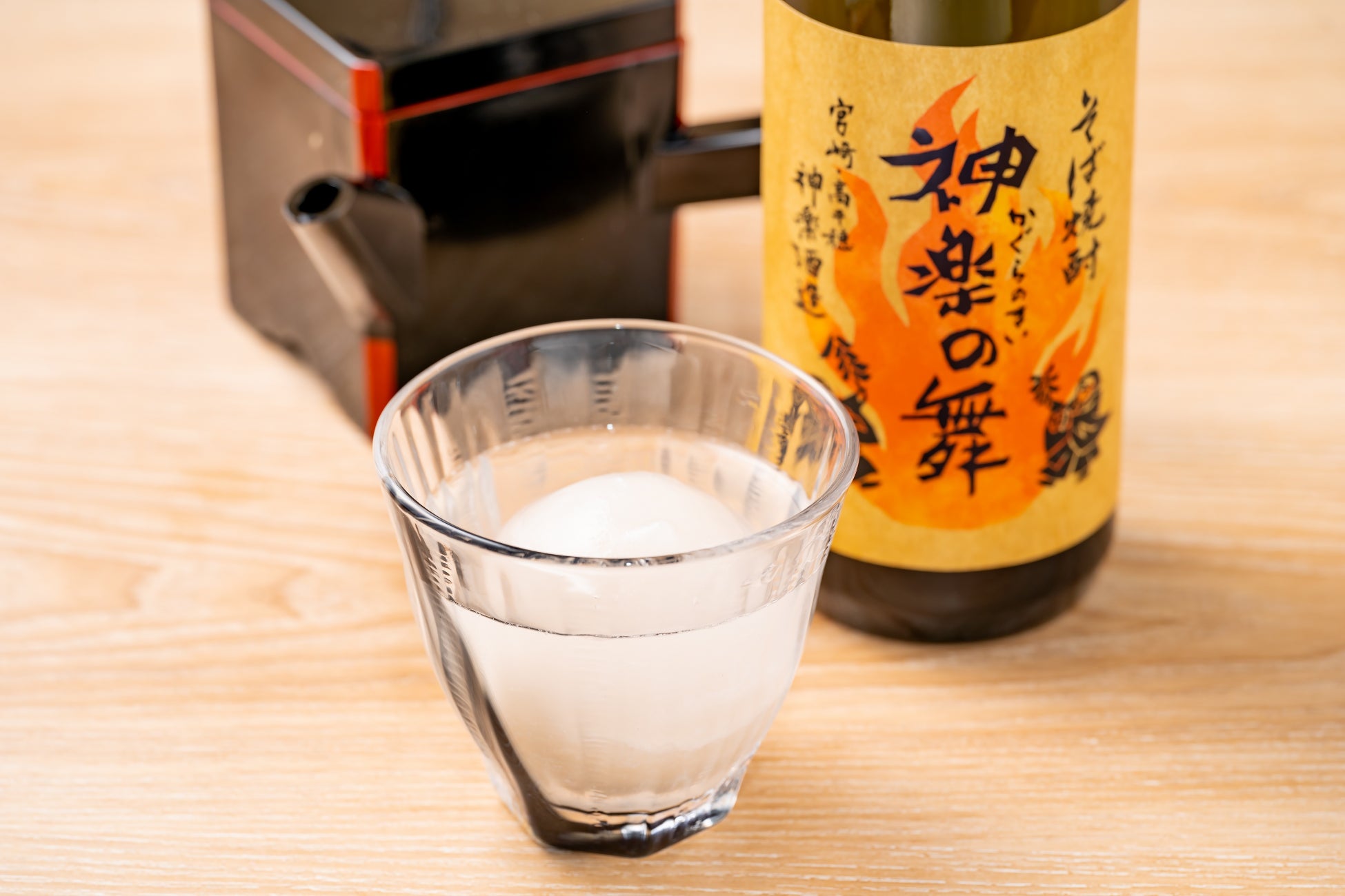 蕎麦焼酎を親和性のある特製『蕎麦湯氷』でどうぞ。溶けた氷からでる甘みで味の変化も楽しめます