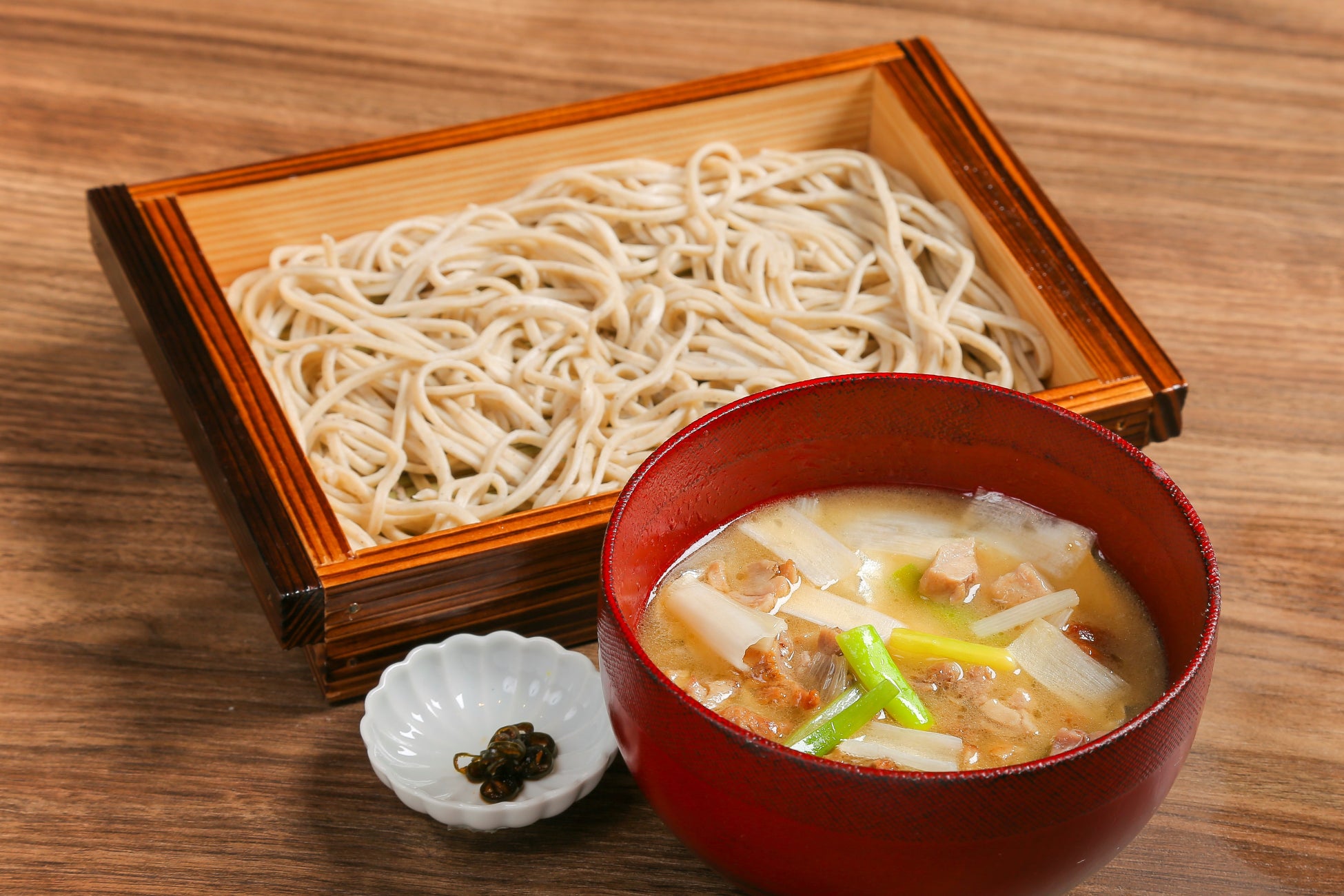 つけ汁は、鴨ガラと昆布から丁寧にとった出汁に新潟の玉藻塩、鴨脂を合わせた塩ベースの極上鴨汁。〆に丁度よい量でご用意しました。