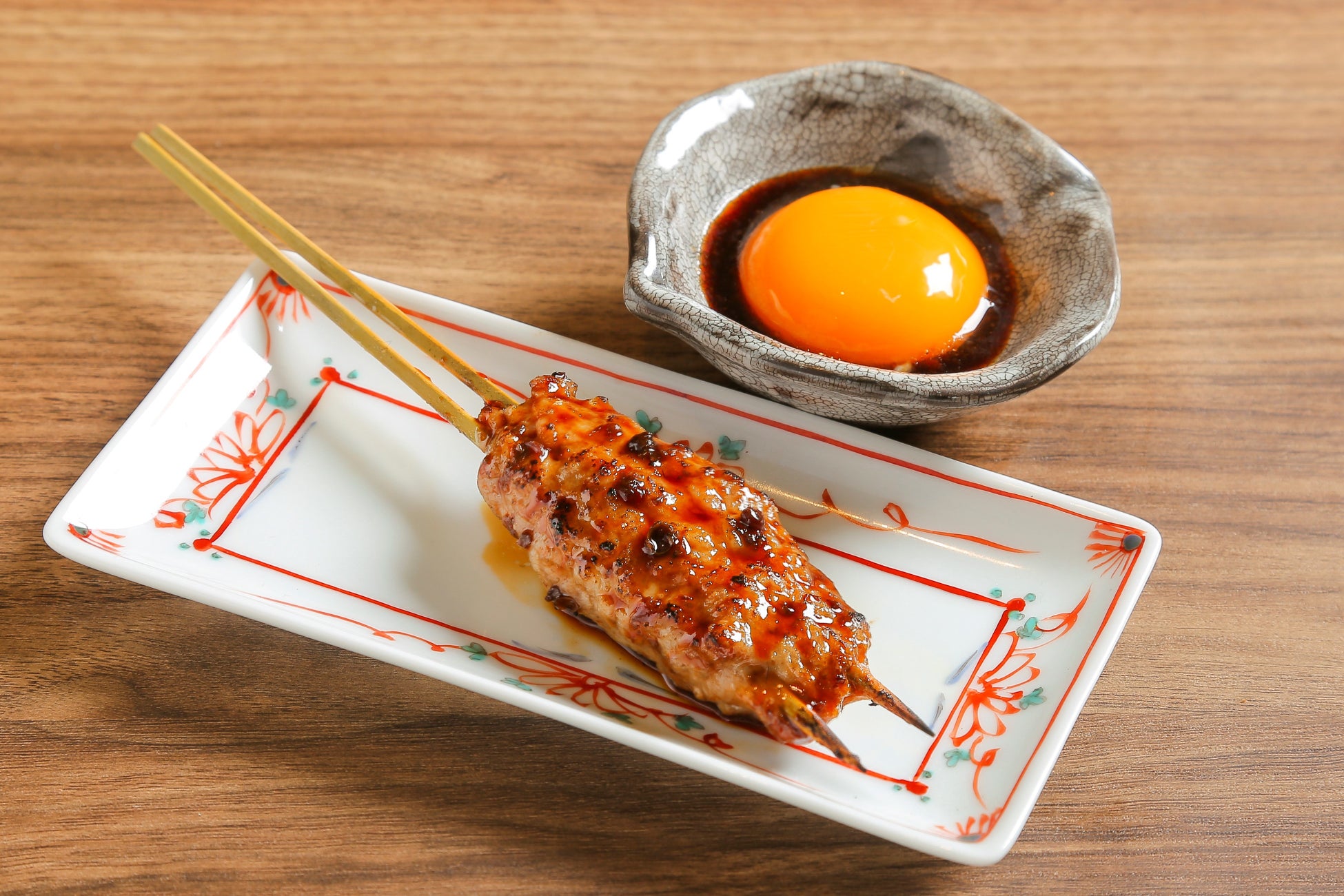粗挽きの鴨ミンチから手仕込みしたつくねは食べごたえ満点。生から焼き上げたつくねはジューシーで、黄身ダレとの相性抜群。