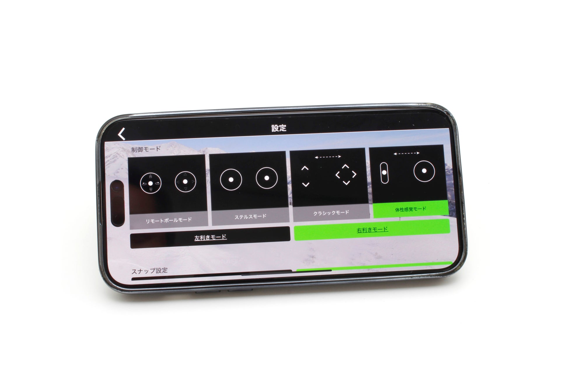 ・体性感覚モード : スマートフォンの傾きに合わせて機体を操縦できます。