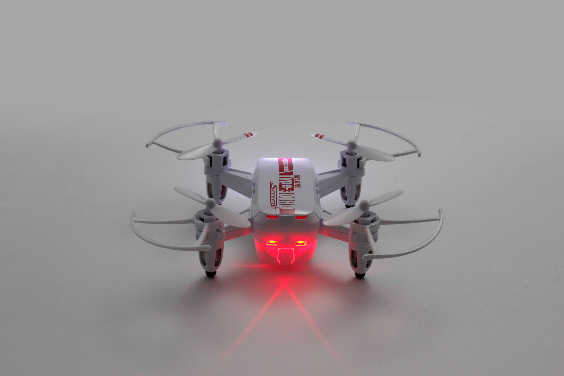 ビギナーからベテランまで安心して離着陸できる、カンタン離着陸機能を搭載。飛行中も気圧センサーが安定した飛行をサポート。操作に慣れてきたら、3段階のスピード切替で徐々にステップアップしてみよう。さらに、機体ライトのON/OFF機能や、360°ロール/ヘッドレスモードなど、多彩な機能で楽しさが広がります。