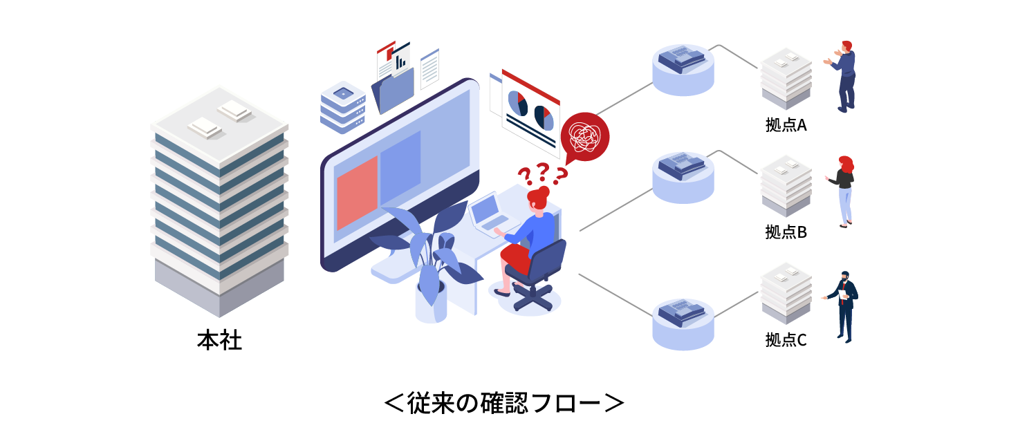 入金消込業務を本社に集約している場合、各拠点の違算に関する情報を本社では把握しづらくなります。各拠点が発行した請求額と入金額にズレが発生した場合、本社では要因を特定することが難しく、本社の経理担当者はメールや電話等で毎回各拠点の担当者や営業部員へ確認する必要がありました。