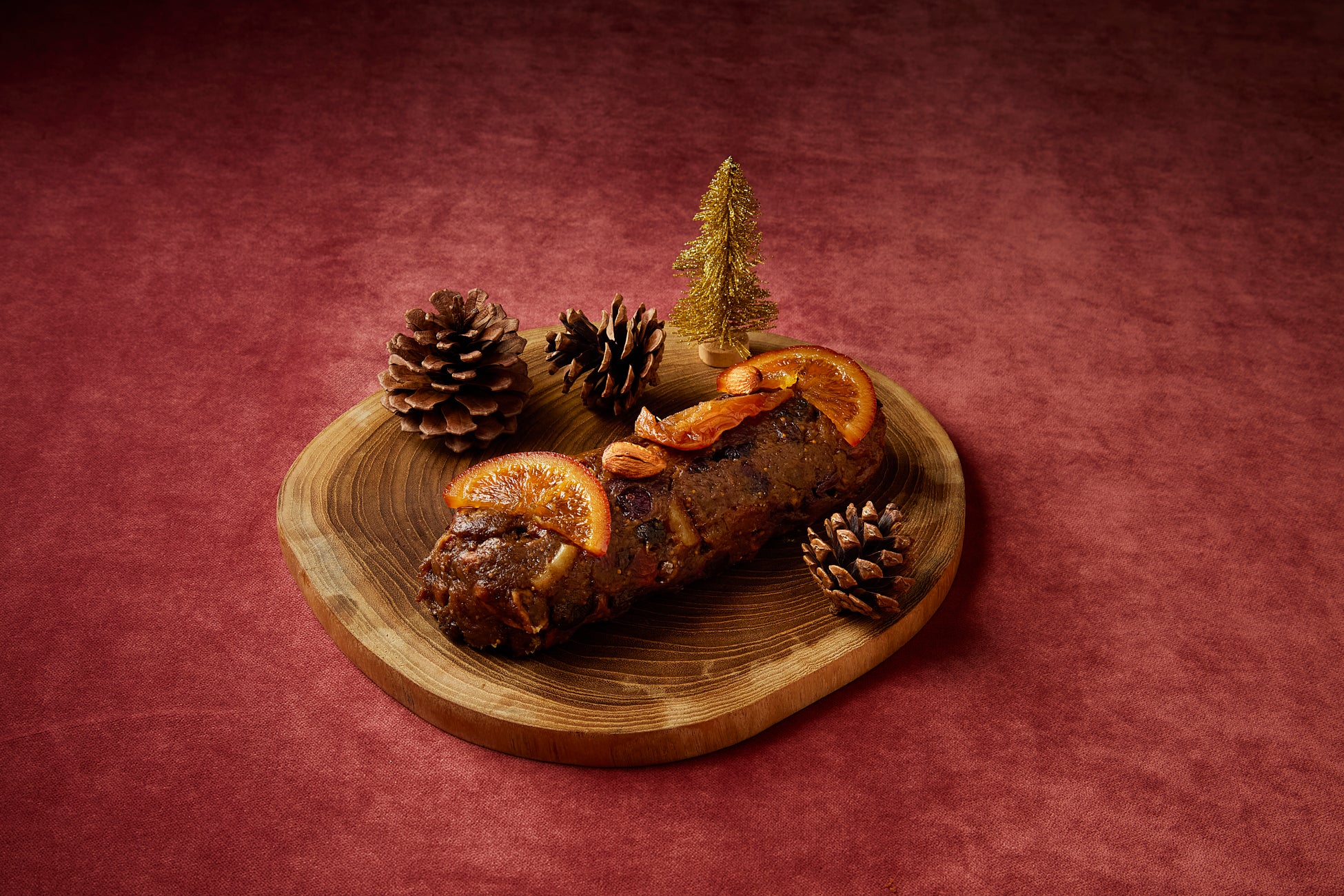 ラム酒に漬け込んだドライフルーツとナッツを、自然な甘みのメープル風味を活かした生地にたっぷりと練り込んだ、香り高い伝統菓子。ご家族や大切な方とのクリスマスにぴったりの一品。