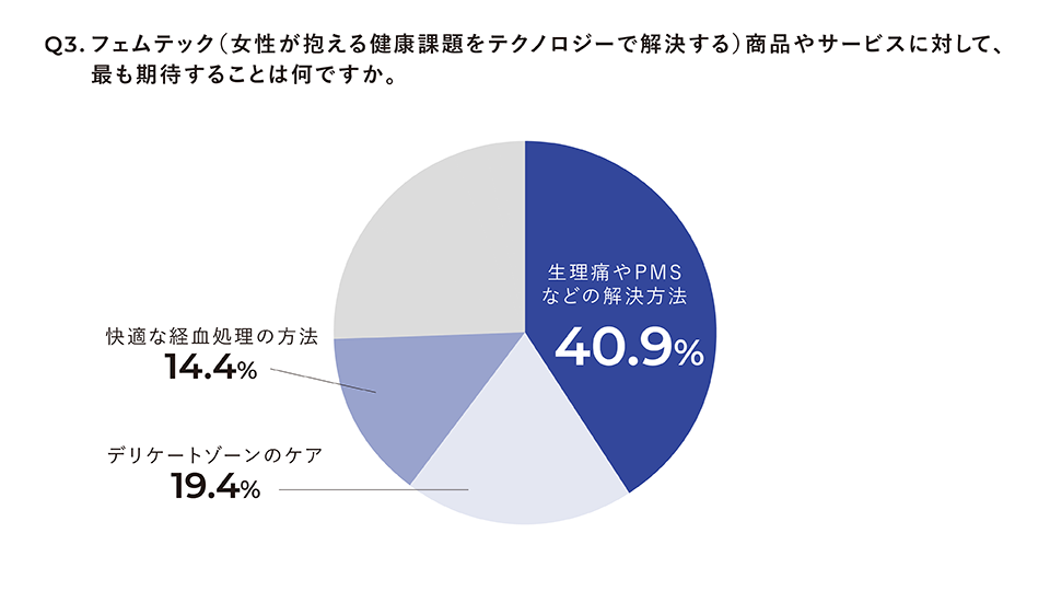 - フェムテック商品やサービスに最も期待することは「生理痛・PMSなどの解決方法」