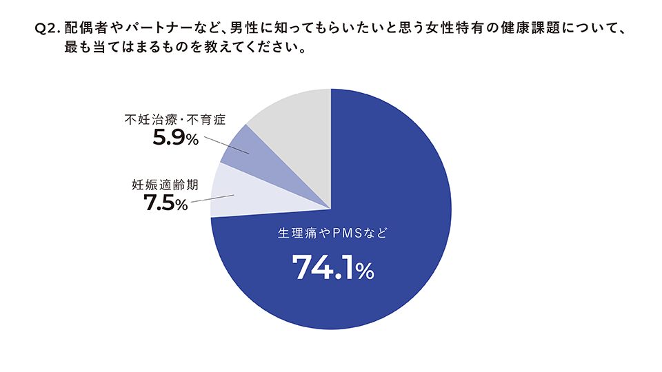 多くの方が「生理やPMSなど」と回答する一方、将来を見据えるうえで外せない「妊娠適齢期(7.5%)」「不妊治療・不育症(5.9%)」「更年期障害(5.0%)」「子宮頸がんや子宮体がん(3.1%)」といったことも知ってほしいと考えていることがわかりました。