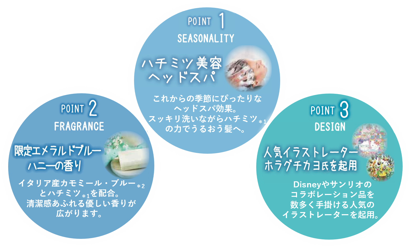 エメラルドブルーハニーの香りを採用し、爽やかなハニーの香りが優しく広がります。