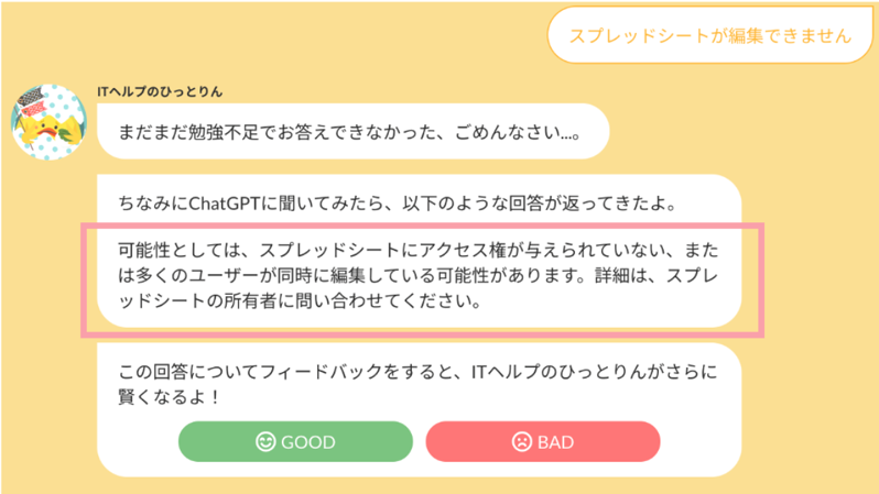 ▼ChatGPTお助け機能を利用した際の回答イメージ