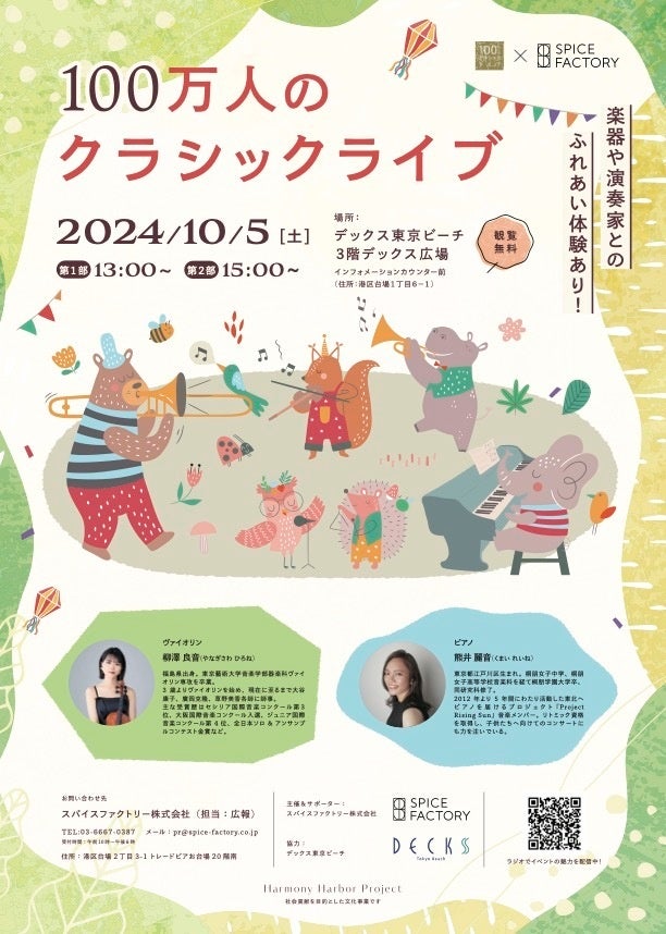 スパイスファクトリーが贈る【100万人のクラシックライブ】〜 デックス東京ビーチで音楽芸術の日、10月5日に開催 〜