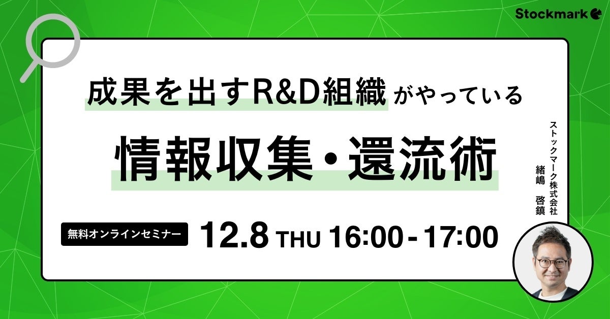 【12月8日(木) 無料セミナー】「成果を出すR&D組織がやっている情報収集・還流術」を開催(ストックマーク主催)