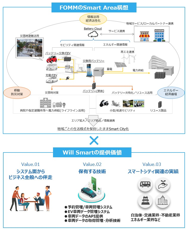 AIやIoT関連のソリューションを提供する株式会社Will Smart(本社:東京都江東区、代表取締役社長:石井 康弘、以下「Will Smart」)は、超小型EV車両の製造・販売を行う株式会社FOMM(本社:神奈川県川崎市、代表取締役社長:鶴巻 日出夫、以下、「FOMM」)のバッテリー交換式EV及び交換式バッテリーを用いたエコシステム創出にむけた協業に取り組んでいることを発表いたします。