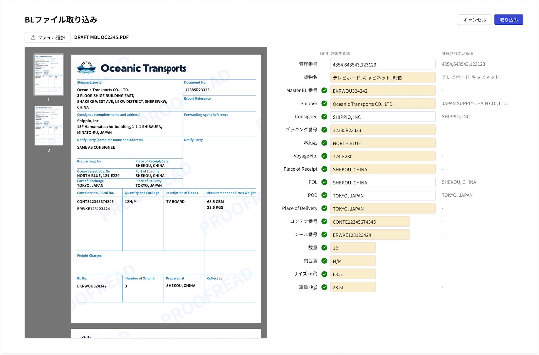 Shippioは国際物流業務の効率化へのAI活用にも挑んでいます。今秋搭載予定のAI-OCRは、記載内容の転記が必要な貿易書類を「Shippio Works」にアップロードするだけで、AIが高精度に貿易処理に必要な情報を抽出し記入する機能です。書類の転記漏れや記入ミスを防ぎ、業務効率を飛躍的に向上させます。今回の機能をはじめ、Shippioでは今後も積極的にAIを活用した機能開発を進めてまいります。