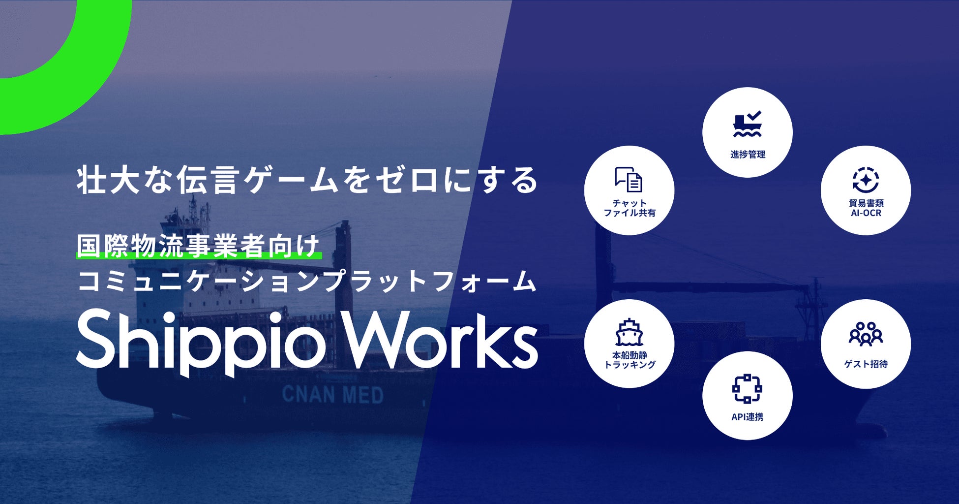 「理想の物流体験を社会に実装する」をミッションに国際物流DXを推進している株式会社Shippio(本社:東京都港区、代表取締役:佐藤 孝徳、以下Shippio)は、2024年9月より新たに国際物流事業者向けのコミュニケーションプラットフォーム「Shippio Works(シッピオ ワークス)」の提供を開始いたします。Shippioは従来、荷主企業向けに「デジタルフォワーディング」「Any Cargo」の2サービスを展開していますが、この度提供を開始する「Shippio Works」はShippio初の物流事業者向けサービスとなります。